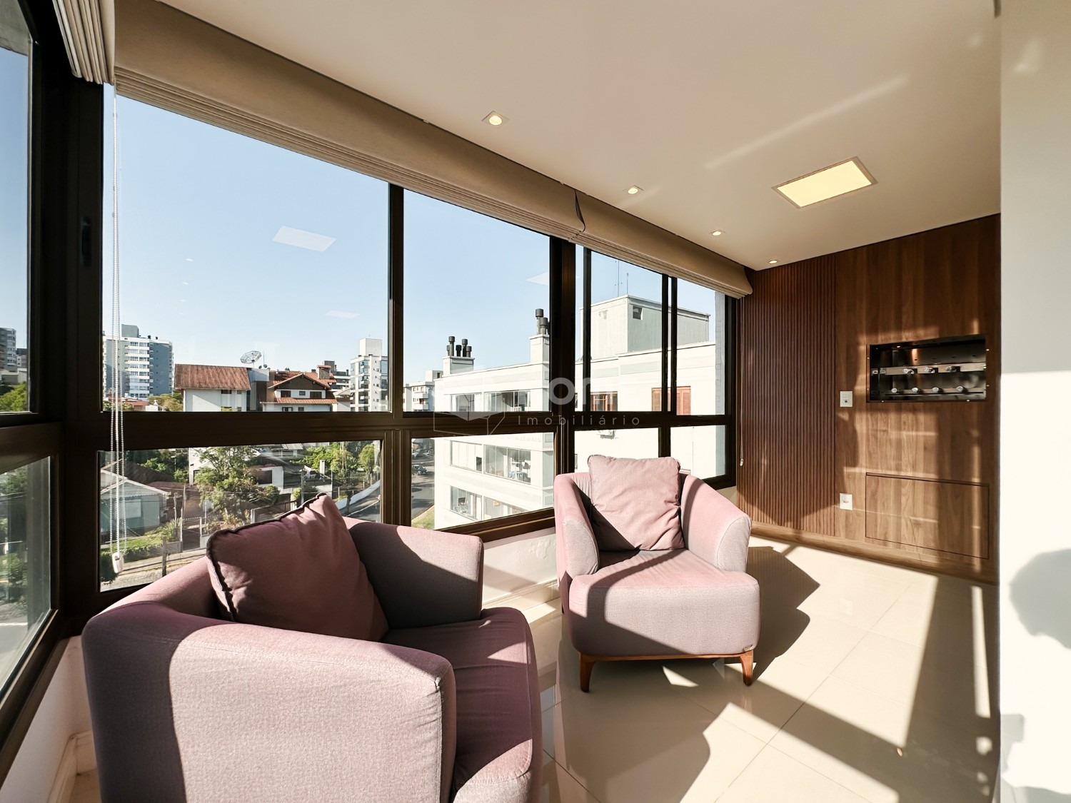 • Amplo living com sacada integrada e uma LINDA VISTA para o centro da cidade;