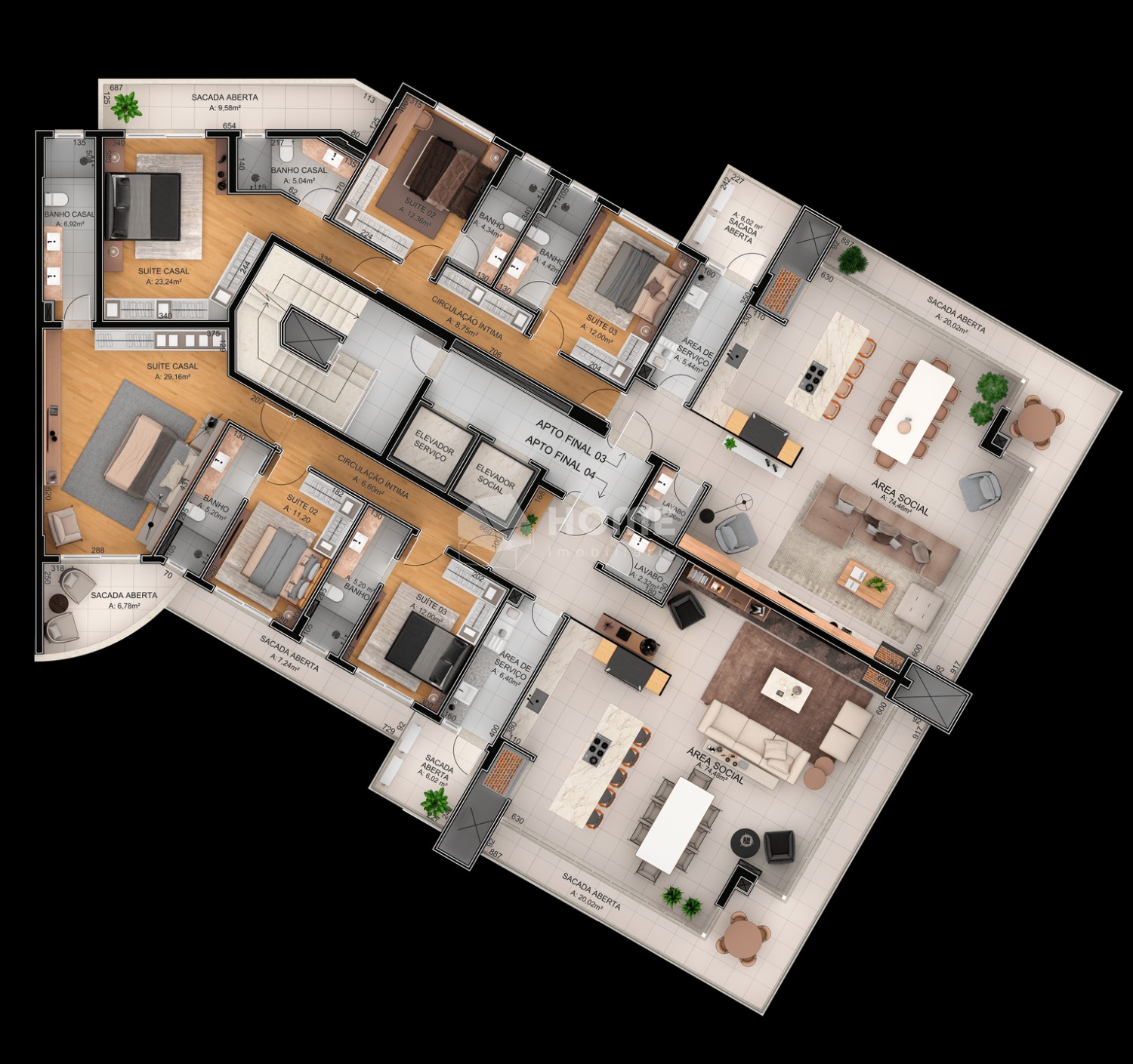 APARTAMENTOS 03 SUÍTES ÁREA PRIVATIVA: 207m² e 225m²